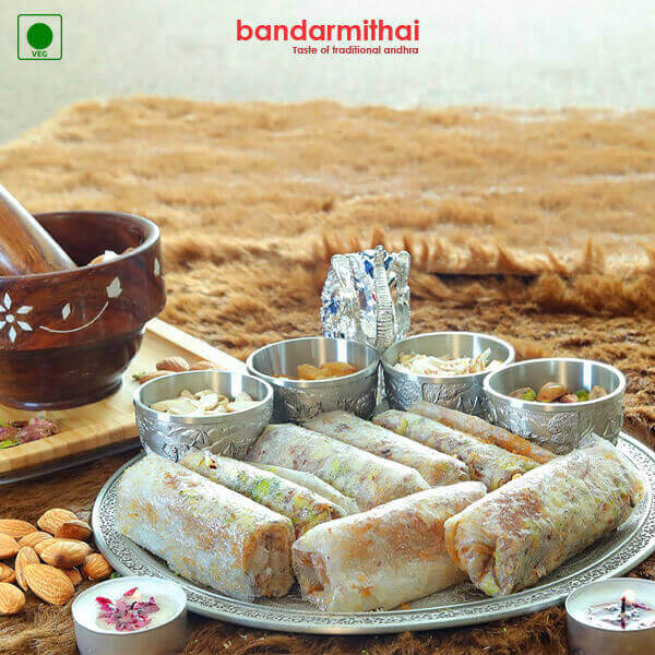 Dry Fruit Pootharekulu, these delicious layers are stuffed with premium dry fruits for an extra dose of decadent delight.