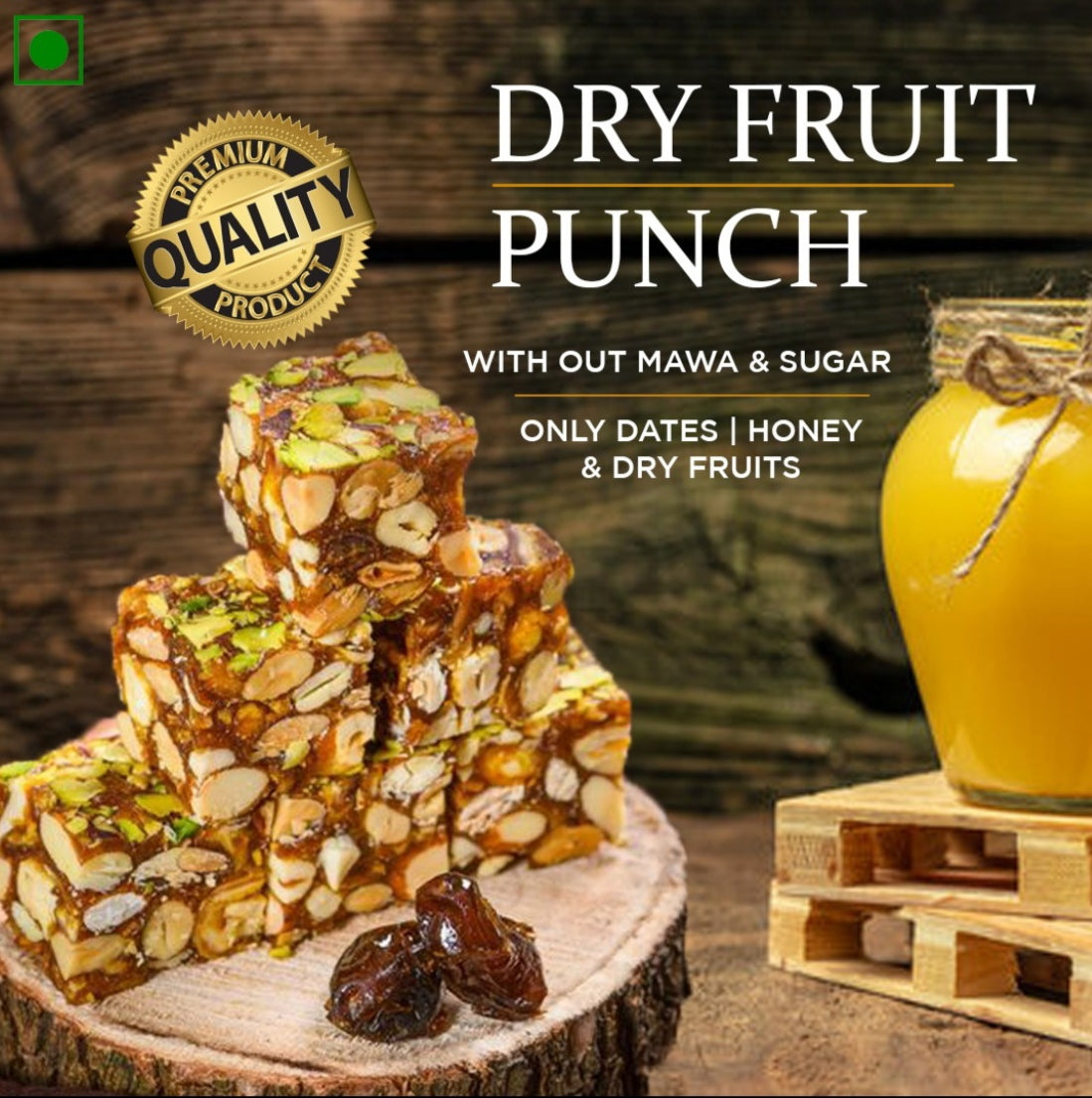Enjoy this classic premium Dryfruit Punch that is made fresh for every order with 100% natural ingredients Almond, Cahsew nuts, Pistachio, Dates, Honey & Pure Ghee.
